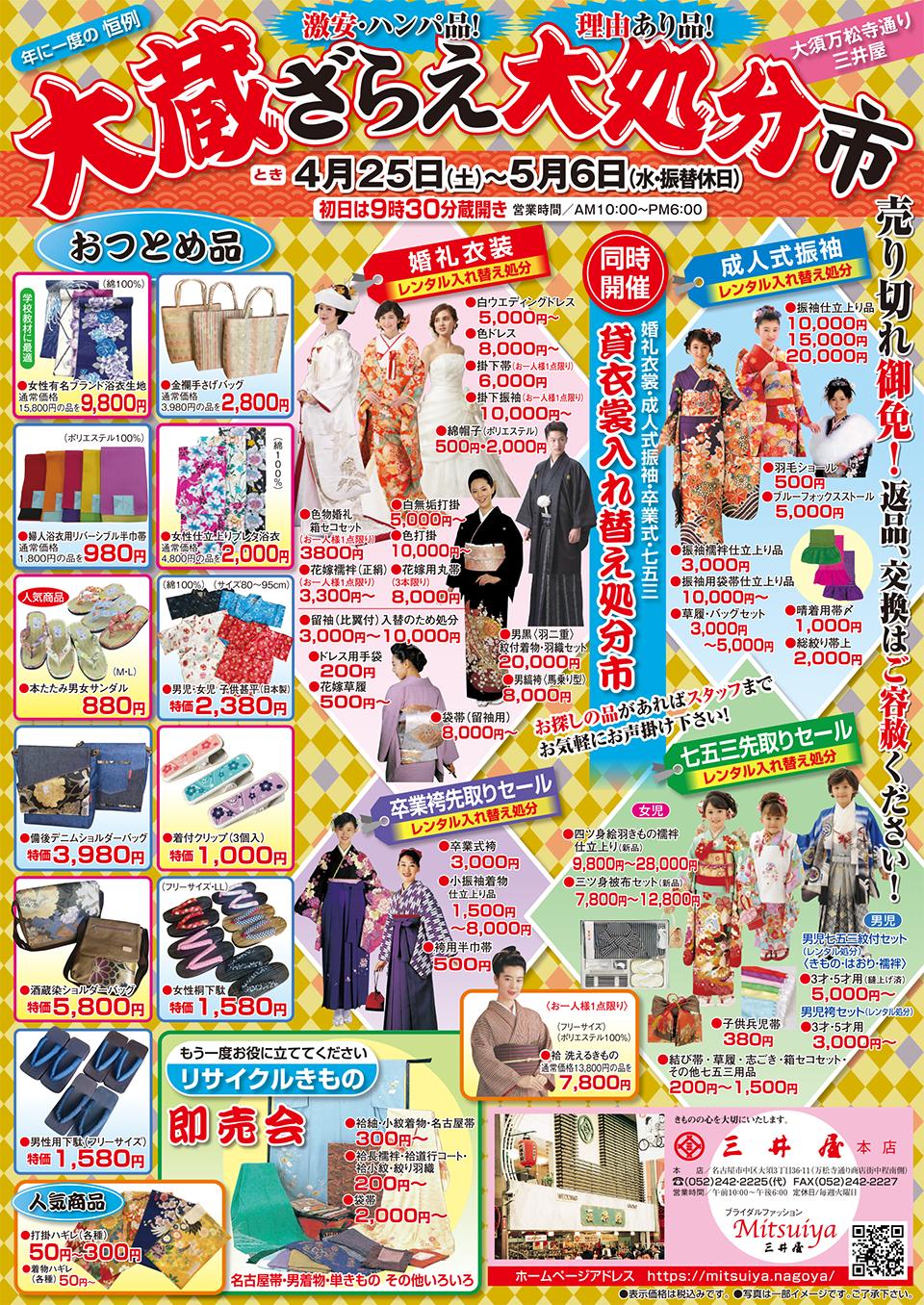 [同時開催]婚礼衣裳・成人式振袖・卒業式・七五三 貸衣裳入れ替え処分市